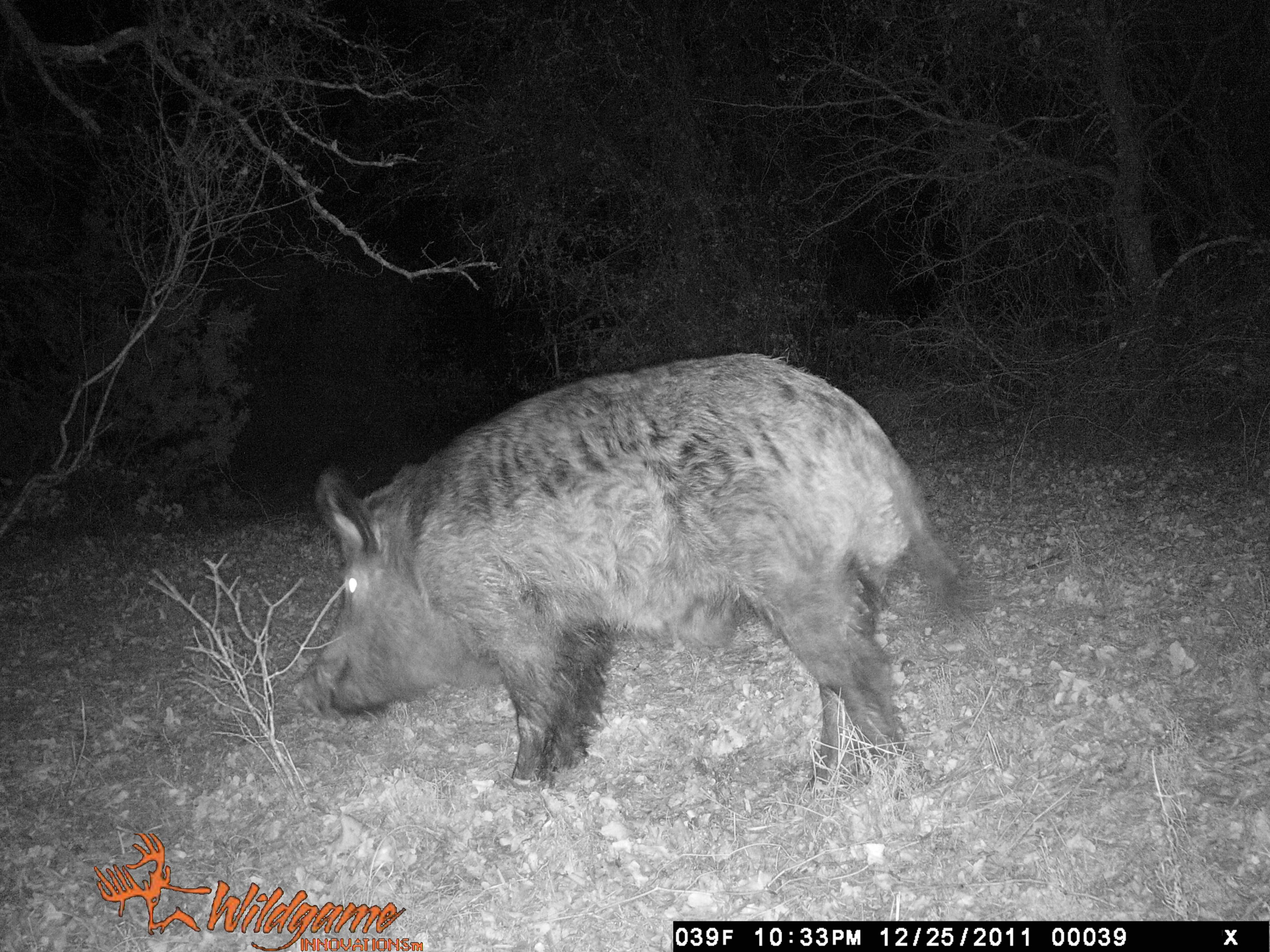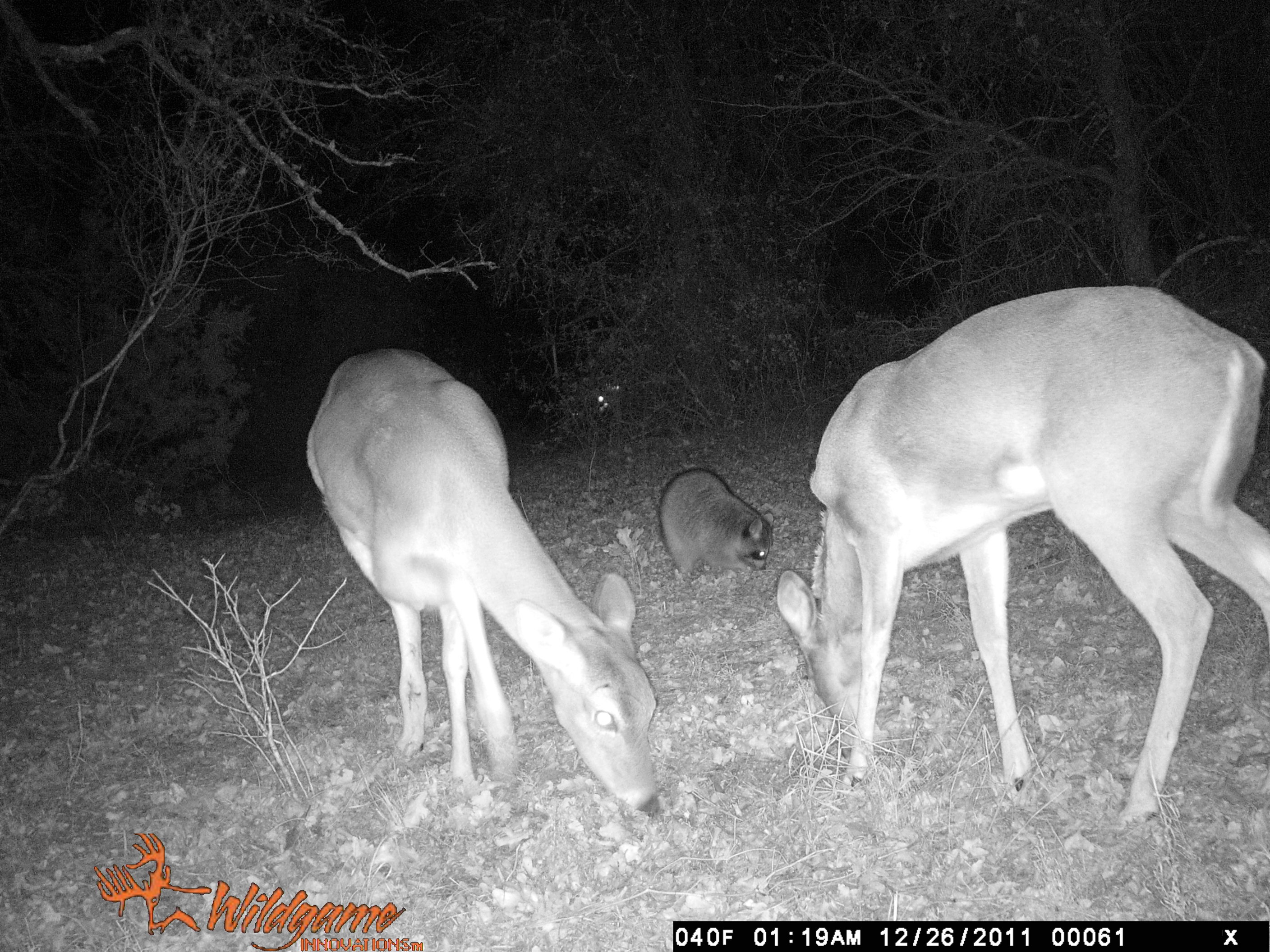I keep a corn feeder up for the deer, but they don’t make their presence known during the day. Neither do the wild pigs which I have a couple of running around the place. The kids gave me one of those infrared game cameras that I set up by the feeder. Here is a sample of what the night holds here on the Hunker Down.